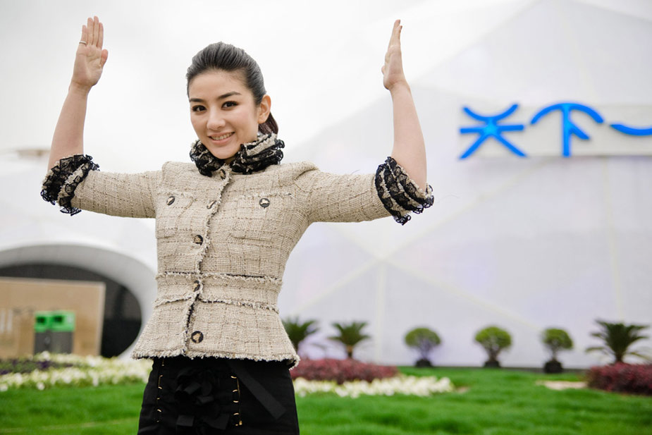 黃奕示范世博標(biāo)準(zhǔn)手勢演繹“EXPO”