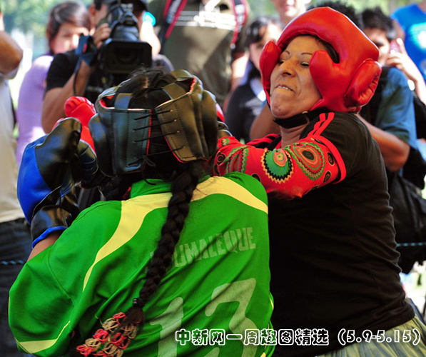 5月13日,秘魯利馬高地舉辦的傳統(tǒng)食品博覽會(huì)上,兩名安第斯農(nóng)民婦女穿著象征秘魯和玻利維亞的裙子同臺(tái)搏擊妙趣橫生。圖片來源:中國(guó)新聞網(wǎng)>>點(diǎn)擊觀看詳細(xì)內(nèi)容