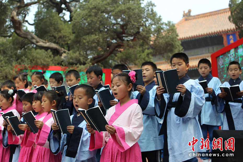 5月15日,首屆“兩岸漢字藝術(shù)節(jié)”新聞發(fā)布會(huì)在北京孔廟舉行。原文化部長、著名作家王蒙與臺灣文化總會(huì)會(huì)長劉兆玄等共同書寫漢字——“漢字藝術(shù)源遠(yuǎn)流長”。 中新社發(fā) 蘇丹 攝