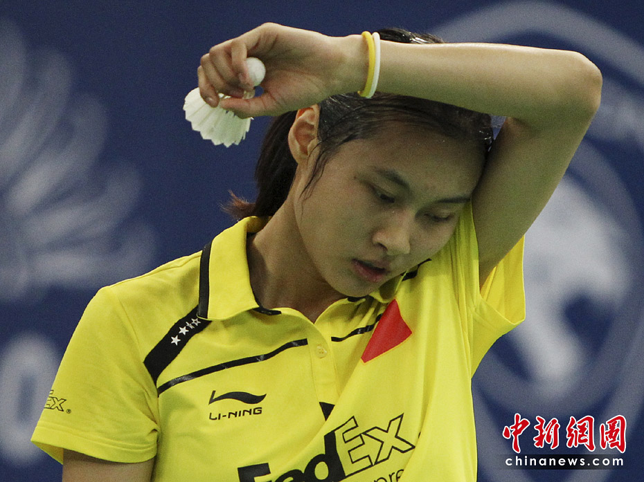 5月15日,在馬來(lái)西亞吉隆坡舉行的2010年尤伯杯女子羽毛球團(tuán)體賽決賽中,中國(guó)隊(duì)(黃衣)以1比3負(fù)于韓國(guó)隊(duì),獲得亞軍。圖片來(lái)源:中國(guó)新聞網(wǎng)