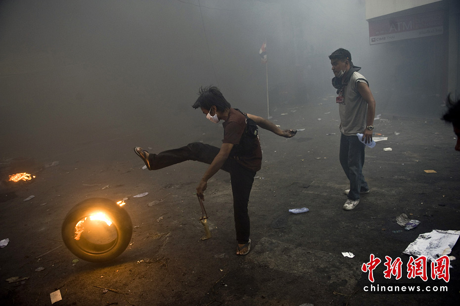 泰國(guó)曼谷急救機(jī)構(gòu)16日凌晨說,截至15日午夜,泰國(guó)軍隊(duì)與“紅衫軍”連續(xù)兩天沖突造成的死亡人數(shù)升至24人,另有211人受傷。圖片來源:中國(guó)新聞網(wǎng)