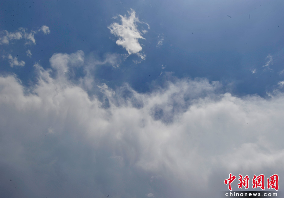 5月18日16時(shí)許,伴隨陣陣?yán)茁暰┏峭唤荡笥,降雨過(guò)后東部天空依然籠罩著烏云,而西邊卻已放晴。中新網(wǎng)記者 金碩 攝