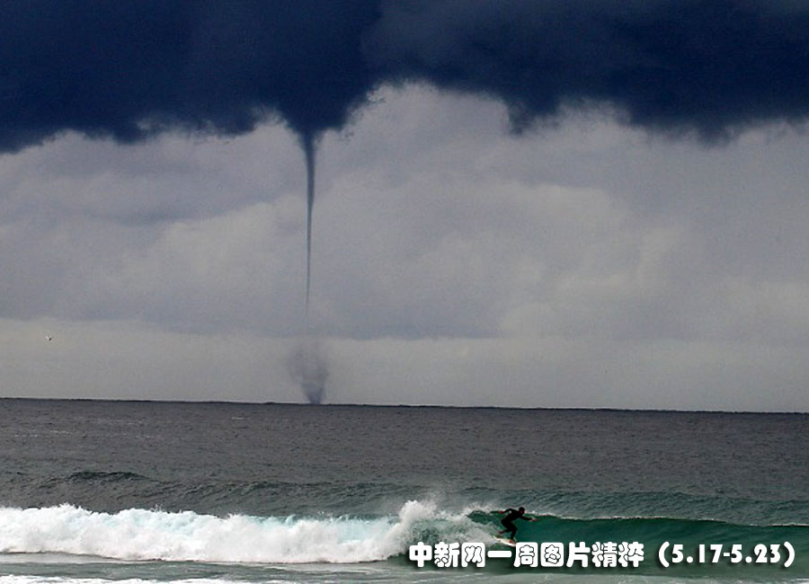 5月17日,在悉尼邦迪海灘,海面上出現(xiàn)了龍卷風(fēng)。這一罕見的景象持續(xù)了大約五分鐘。