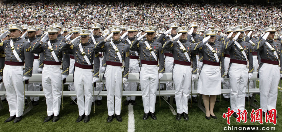 5月22日,美國紐約州北部哈德遜河西岸西點鎮(zhèn)的西點軍校舉行2010年度畢業(yè)典禮,美國總統(tǒng)奧巴馬出席典禮。本屆共有1002名學(xué)員獲得理學(xué)學(xué)士學(xué)位,并被授予陸軍少尉軍銜。圖片來源:中國新聞網(wǎng)