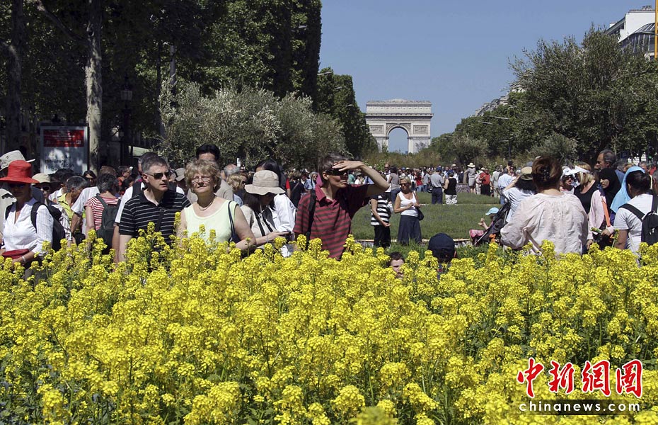 5月24日,法國總統(tǒng)薩科齊和妻子布呂尼參觀在法國巴黎舉行的“自然首都”展。該項展覽是由街頭藝術(shù)家加德·魏爾聯(lián)手法國“青年農(nóng)民協(xié)會”和林業(yè)協(xié)會共同發(fā)起的的,將百余種農(nóng)作物、樹木和動物“齊聚”法國首都巴黎的香榭麗舍大街,令這條“香街”變身“綠色的自然世界”。圖片來源:中國新聞網(wǎng)