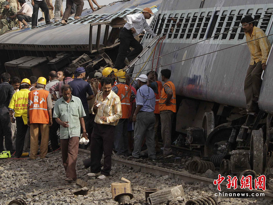當(dāng)?shù)貢r(shí)間5月28日,印度一列特快列車在東部西孟加拉邦的西米德納布爾遭反政府武裝襲擊脫軌,造成百余人死傷。圖片來(lái)源:中國(guó)新聞網(wǎng)
