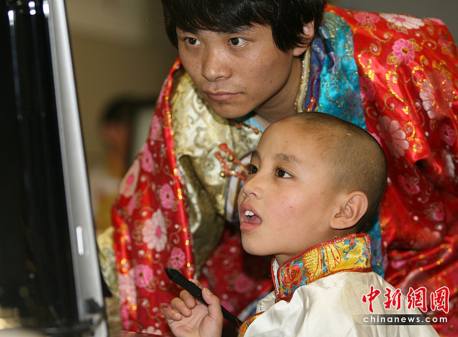 5月31日,玉樹地震孤兒多杰仁青在老師的指導(dǎo)下在北京國家圖書館體驗新開通的少兒數(shù)字圖書館,迎接六一兒童節(jié)。這批玉樹孤兒共23名,于5月23日抵京,由“中華少年兒童慈善救助基金會”安置。在北京度過“六一”后,他們還將休整3個月,待災(zāi)區(qū)情況穩(wěn)定后,中華兒慈會將與當(dāng)?shù)氐拿裾块T協(xié)商,在征求孤兒本人意愿的基礎(chǔ)上,或讓他們返回原地上學(xué),或者在內(nèi)地長期居住。基金會將一直支持他們到18歲成人。中新社發(fā) 蘇丹 攝
