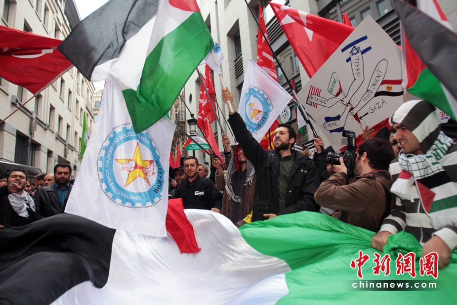 以色列海軍31日對(duì)國(guó)際人道救援船隊(duì)發(fā)動(dòng)襲擊,船上至少有9名支持巴勒斯坦的活動(dòng)人士被以軍打死,眾多國(guó)家和國(guó)際組織紛紛表示“震驚”,多國(guó)民眾走上街頭,對(duì)襲擊事件表示抗議。圖為在比利時(shí)布魯塞爾,民眾在街頭游行抗議。
