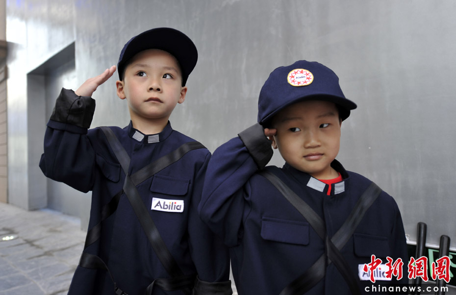 圖為孩子體驗(yàn)做警察。 中新網(wǎng)記者 王紅綱 攝