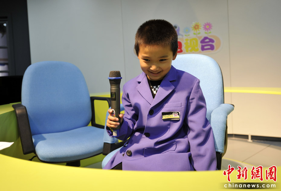 圖為孩子在體驗(yàn)做電視臺(tái)主持人。 中新網(wǎng)記者 王紅綱 攝
