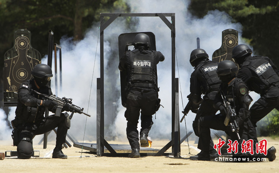 2010年6月1日,在韓國(guó)首爾,首爾防衛(wèi)部隊(duì)進(jìn)行了大型反恐軍事演練。