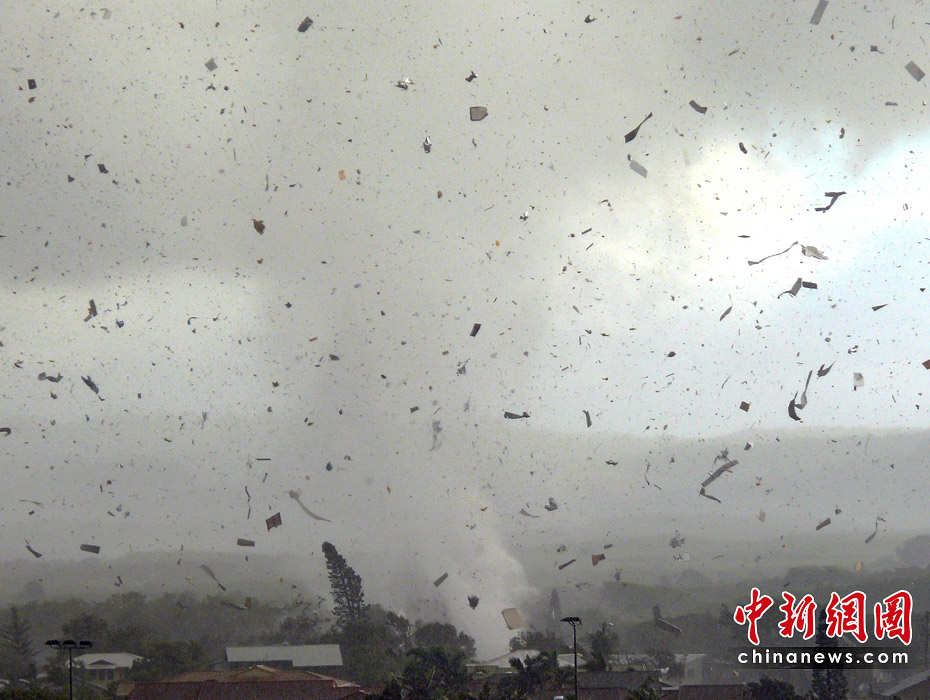 6月3日,澳大利亞新南威爾士州海濱城鎮(zhèn)倫諾克斯黑德遭到龍卷風(fēng)襲擊,大樹被連根拔起,屋頂被掀翻,重型拖車也被拋到半空中。數(shù)千所民居停電。一共有12所房屋在這場龍卷風(fēng)中被摧毀,6人受傷,傷勢不重。所幸沒有人員死亡的報告。圖片來源:中國新聞網(wǎng)