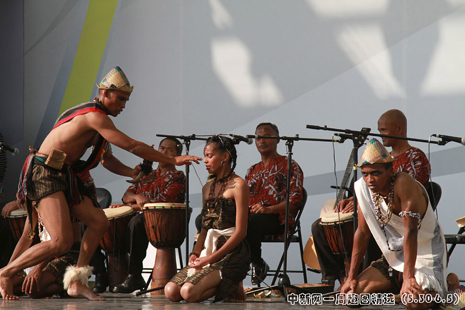 5月30日,馬達加斯加肯特思米諾歌舞團在世博園非洲廣場表演比洛傳統(tǒng)儀式,逼真的神態(tài)、激情的表演,博得許多參觀者稱贊。當天是馬達加斯加館日,世博中心內舉行了其國家館日活動,馬方和中方代表共同出席。圖片來源:中國新聞網>>點擊觀看詳細內容