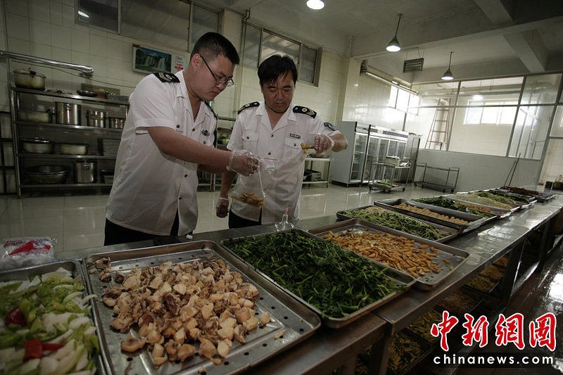 2010年6月4日,山東省濰坊市衛(wèi)生系統(tǒng)的工作人員檢查濰坊城區(qū)的高考考點(diǎn)食堂,為高考“保駕護(hù)航”。對(duì)此,高新區(qū)衛(wèi)生局購(gòu)置了針對(duì)農(nóng)殘、亞硝酸鹽、重金屬等快速檢測(cè)的食品安全快速檢測(cè)設(shè)備,確?忌嬍嘲踩O樹寶/CFP