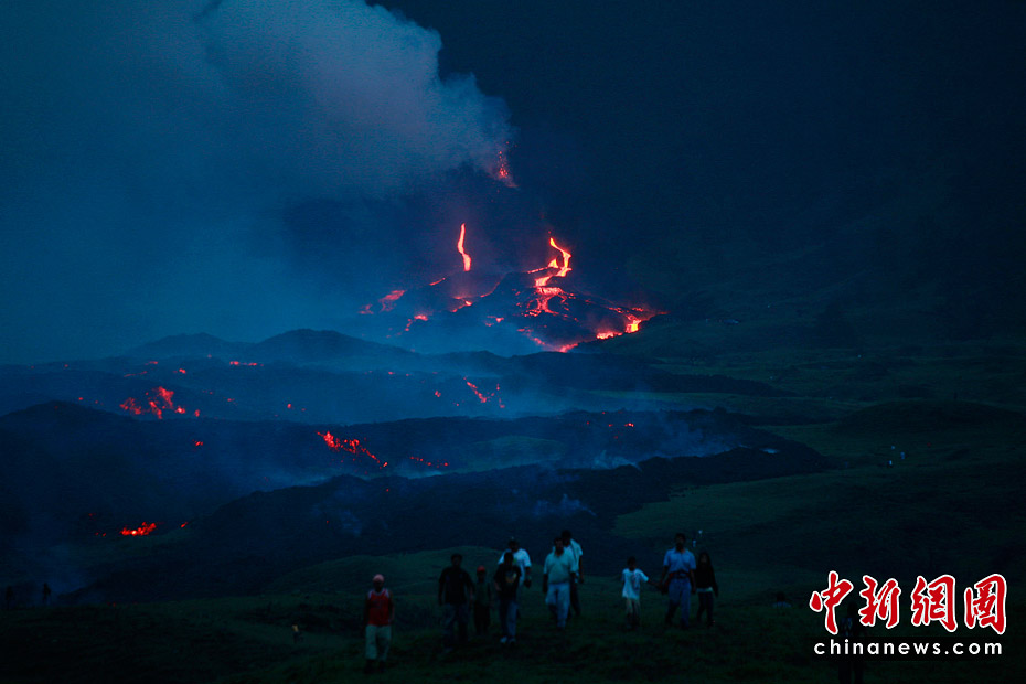 當地時間6月4日,危地馬拉帕卡亞火山噴發(fā),涌出大量熔巖,迫使周邊數千居民緊急疏散。圖片來源:中國新聞網