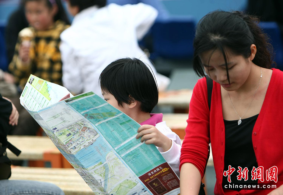 截至6月5日19點(diǎn)30分,上海世博會(huì)累計(jì)參觀者已超過(guò)1000萬(wàn)人次。據(jù)悉,上海世博會(huì)的規(guī)劃用地為5.28平方公里,約242個(gè)國(guó)家和國(guó)際組織參展分布在浦東和浦西兩大區(qū)域。要想在這么大的地方找到自己想去的地方,那么世博地圖就是必須的裝備。圖為上海世博園內(nèi)游客正在地圖上尋找自己要去的地方。中新社記者 杜洋 攝