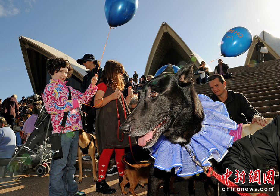 6月5日,澳大利亞悉尼歌劇院外舉辦了全球首場(chǎng)狗能聽懂的音樂會(huì),約有1000人帶著數(shù)百只愛犬在劇院前庭和階梯落坐,聆聽“狗的音樂”,整場(chǎng)音樂會(huì)全長(zhǎng)20分鐘。圖片來源:中國新聞網(wǎng)