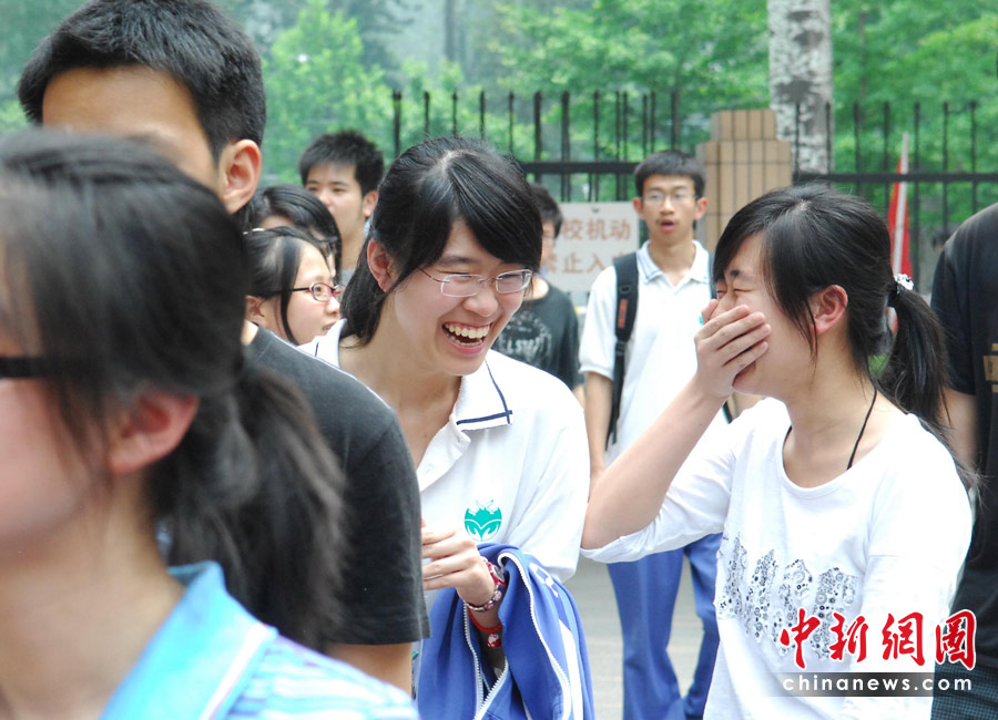 6月7日,為期兩天的2010年普通高等學校招生全國統(tǒng)一考試開考,全國將有957萬考生走進考場。圖為學生走出考場后相互交流心得。中新社發(fā) 侯宇 攝
