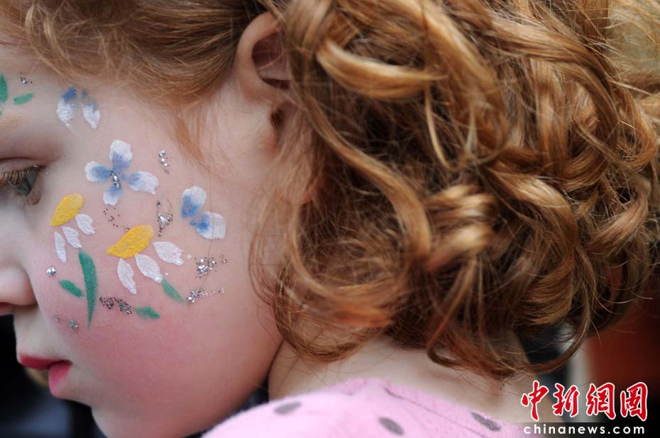 當(dāng)?shù)貢r間2010年6月6日,英國倫敦舉行卡姆登綠色市集(Camden Green Fair),這是英國倫敦每年環(huán)保領(lǐng)域的“重頭戲”。本屆市集的主旨是要喚起大眾對環(huán)境問題的關(guān)注,選擇更加可持續(xù)發(fā)展的生活方式。據(jù)活動主辦方預(yù)計,本屆市集將吸引來自英國各地和世界各國的2萬多人參加。圖為可愛的英國小女孩兒臉上的環(huán)保圖案。Fiona/攝 Fiona 馬小剛/文