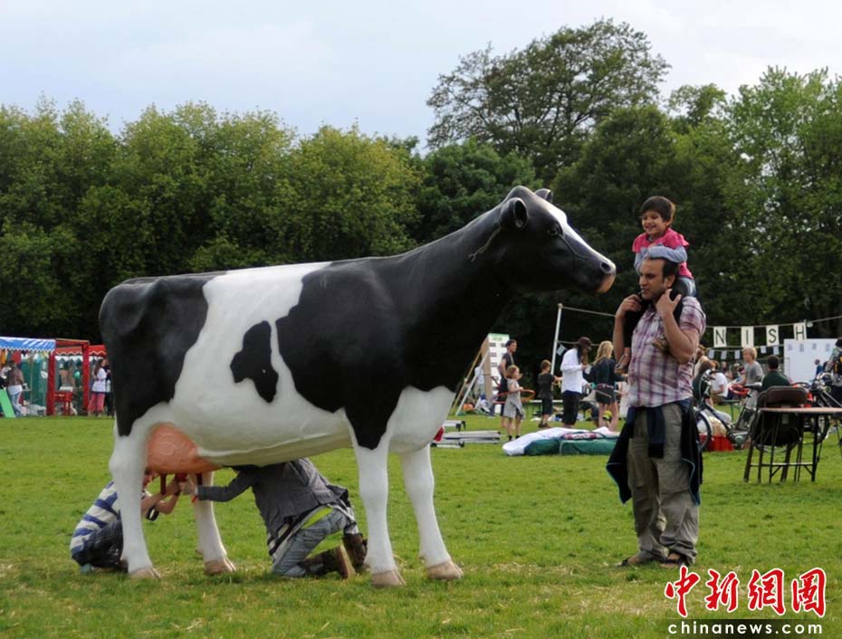 當(dāng)?shù)貢r(shí)間2010年6月6日,英國(guó)倫敦舉行卡姆登綠色市集(Camden Green Fair),這是英國(guó)倫敦每年環(huán)保領(lǐng)域的“重頭戲”。本屆市集的主旨是要喚起大眾對(duì)環(huán)境問(wèn)題的關(guān)注,選擇更加可持續(xù)發(fā)展的生活方式。據(jù)活動(dòng)主辦方預(yù)計(jì),本屆市集將吸引來(lái)自英國(guó)各地和世界各國(guó)的2萬(wàn)多人參加。圖為人們?cè)谝粋(gè)奶牛模型旁體驗(yàn)“手工擠牛奶”的樂(lè)趣。Fiona/攝 Fiona 馬小剛/文