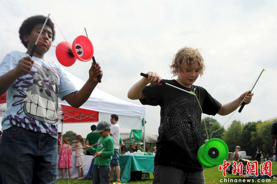 當(dāng)?shù)貢r(shí)間2010年6月6日,英國倫敦舉行卡姆登綠色市集(Camden Green Fair),這是英國倫敦每年環(huán)保領(lǐng)域的“重頭戲”。本屆市集的主旨是要喚起大眾對環(huán)境問題的關(guān)注,選擇更加可持續(xù)發(fā)展的生活方式。據(jù)活動(dòng)主辦方預(yù)計(jì),本屆市集將吸引來自英國各地和世界各國的2萬多人參加。圖為抖空竹是個(gè)時(shí)髦運(yùn)動(dòng)。Fiona/攝 Fiona 馬小剛/文