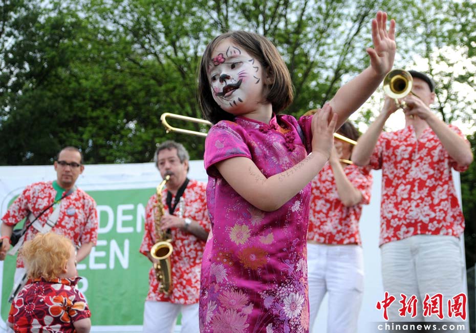 當(dāng)?shù)貢r(shí)間2010年6月6日,英國(guó)倫敦舉行卡姆登綠色市集(Camden Green Fair),這是英國(guó)倫敦每年環(huán)保領(lǐng)域的“重頭戲”。本屆市集的主旨是要喚起大眾對(duì)環(huán)境問(wèn)題的關(guān)注,選擇更加可持續(xù)發(fā)展的生活方式。據(jù)活動(dòng)主辦方預(yù)計(jì),本屆市集將吸引來(lái)自英國(guó)各地和世界各國(guó)的2萬(wàn)多人參加。圖為一名英國(guó)小女孩兒身著中式旗袍翩翩起舞,宣傳環(huán)保。Fiona/攝 Fiona 馬小剛/文
