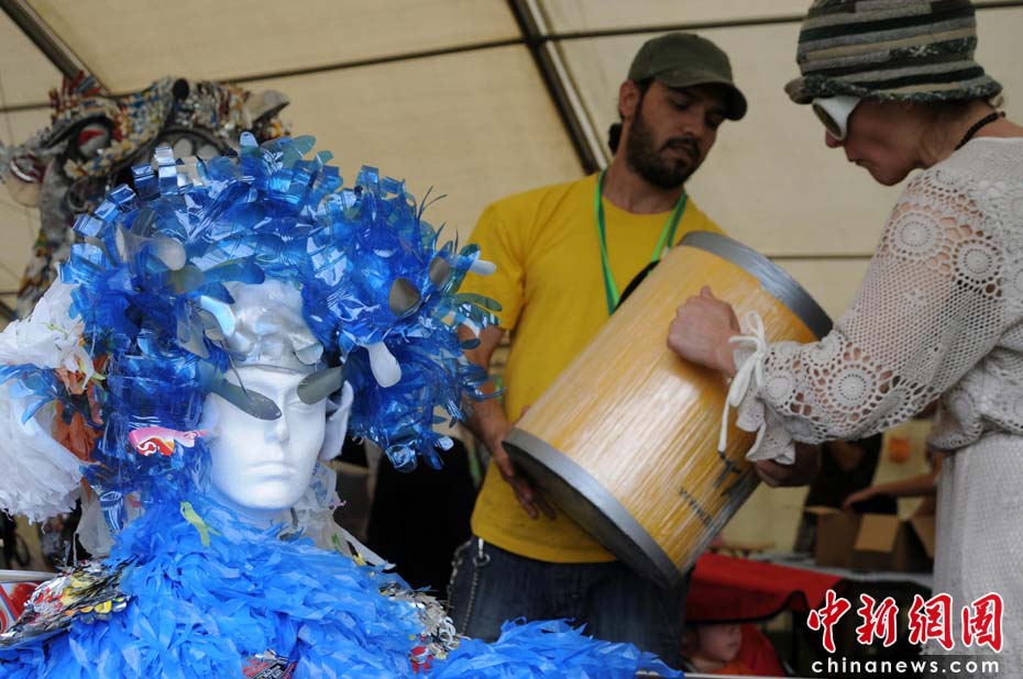 當(dāng)?shù)貢r間2010年6月6日,英國倫敦舉行卡姆登綠色市集(Camden Green Fair),這是英國倫敦每年環(huán)保領(lǐng)域的“重頭戲”。本屆市集的主旨是要喚起大眾對環(huán)境問題的關(guān)注,選擇更加可持續(xù)發(fā)展的生活方式。據(jù)活動主辦方預(yù)計,本屆市集將吸引來自英國各地和世界各國的2萬多人參加。圖為藝術(shù)家們用回收的塑料制品制作的時尚作品。仔細(xì)看還能找到“品客薯片”包裝的細(xì)微痕跡。Fiona/攝 Fiona 馬小剛/文