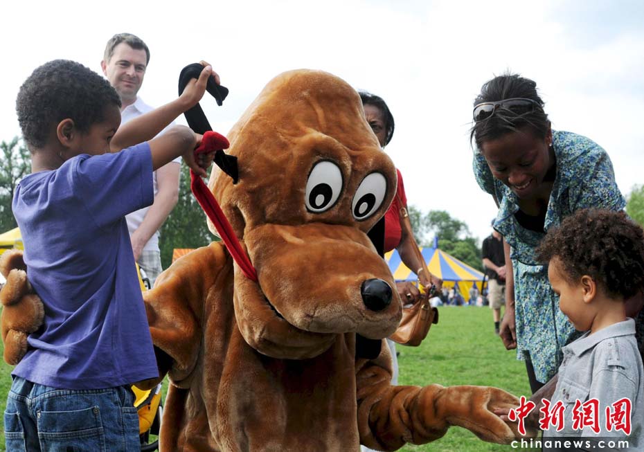 當(dāng)?shù)貢r間2010年6月6日,英國倫敦舉行卡姆登綠色市集(Camden Green Fair),這是英國倫敦每年環(huán)保領(lǐng)域的“重頭戲”。本屆市集的主旨是要喚起大眾對環(huán)境問題的關(guān)注,選擇更加可持續(xù)發(fā)展的生活方式。據(jù)活動主辦方預(yù)計(jì),本屆市集將吸引來自英國各地和世界各國的2萬多人參加。圖為由工作人員扮成的卡通狗總會引來許多孩子。Fiona/攝 Fiona 馬小剛/文
