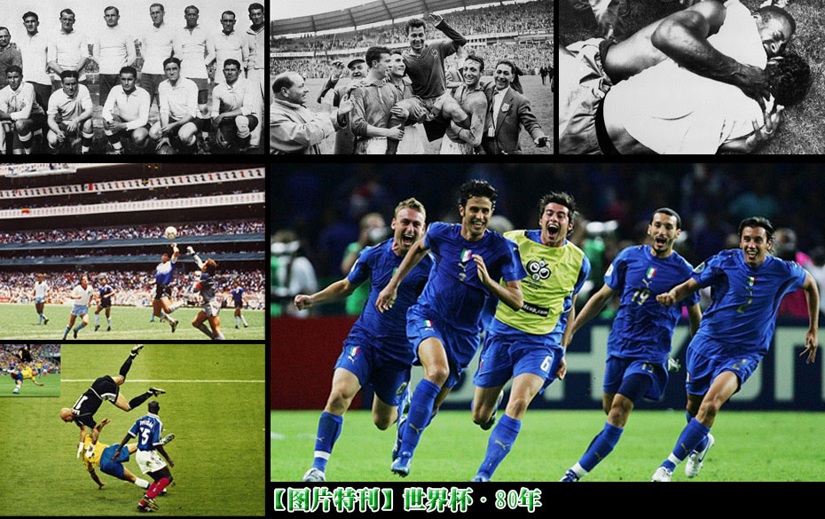 1930年,首屆世界杯在烏拉圭拉開帷幕,至2010年南非世界杯已走過80年歷史。在已經(jīng)結束的18屆世界杯里,有烏拉圭、意大利、德國、巴西、英格蘭、阿根廷和法國七個國家舉起冠軍獎杯。在世界杯的歷史長河中,有奪冠喜悅,也有飲恨失落,還有那些讓人難以忘記的鏡頭……