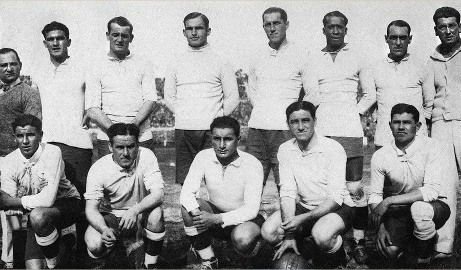 圖為首屆冠軍隊(duì)烏拉圭。第一屆世界杯參賽隊(duì)只有13支,包括4支歐洲球隊(duì)、8支南美洲球隊(duì)以及一支來(lái)自美國(guó)的代表隊(duì),不過(guò)這屆賽事體現(xiàn)了當(dāng)時(shí)世界足壇的最高水平。東道主烏拉圭隊(duì)4比2戰(zhàn)勝阿根廷奪得首屆冠軍,首都蒙得維的亞慶祝球隊(duì)奪冠的活動(dòng)持續(xù)了幾天幾夜。為了紀(jì)念這場(chǎng)勝利,決賽后的第二天(7月31日)被定為全國(guó)性節(jié)日。