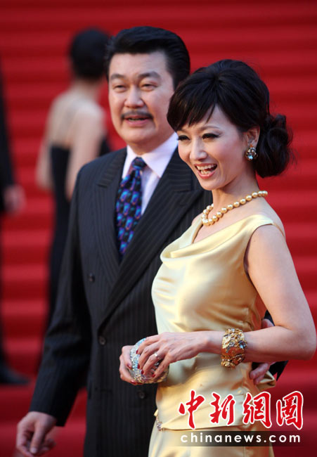 6月12日,第十三屆上海國(guó)際電影節(jié)開幕式在上海大劇院舉行。趙雅芝夫婦攜手出席開幕式紅毯儀式。中新社發(fā) 湯彥俊 攝