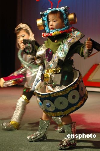 10月30日,安徽省蕪湖市在少年宮舉辦首屆青少年科普運(yùn)動(dòng)會(huì)環(huán)保時(shí)裝秀比賽,來自28所中小學(xué)共280名學(xué)生參賽。孩子們身著用報(bào)紙、包裝袋、塑料瓶、樹葉等廢舊材料制成的時(shí)裝,以各種獨(dú)特的藝術(shù)造型展現(xiàn)“保護(hù)環(huán)境、節(jié)約能源”的環(huán)保理念。中新社發(fā) 陳立希 攝