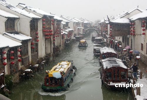 1月27日,蘇州迎來了今年以來的最大范圍的強(qiáng)降雪天氣,雖說給市民的出行帶來不便,但古色古香的山塘街也被白雪包裹,呈現(xiàn)出一種幽靜安寧的景色,吸引了大批的游客前來觀賞。中新社發(fā) 邱勇 攝