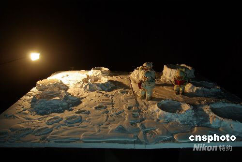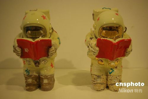 9月24日,中國(guó)航天員登上月球的作品在北京798藝術(shù)區(qū)畫廊中展出,吸引了許多觀眾的目光。中新社發(fā) 九州 攝