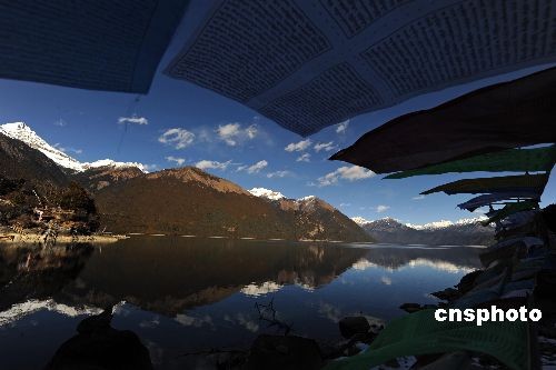 2009年初春,西藏林芝巴松措湖,經(jīng)幡在湖邊飄舞,人文景觀和雪山圣湖自然景觀圣潔迷人。通過冬季旅游促銷活動(dòng),西藏旅游業(yè)呈現(xiàn)回暖趨勢(shì),農(nóng)歷春節(jié)期間,西藏旅游業(yè)的各項(xiàng)指標(biāo)開始增長(zhǎng),業(yè)內(nèi)人士認(rèn)為,即將到來的藏歷新年將更快提升西藏旅游熱度。中新社發(fā) 廖攀 攝