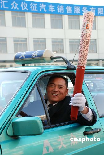 11月1日,中國大陸第一位出租車司機“奧運火炬手”在山東淄博產(chǎn)生。他是山東淄博大眾交運公司雷鋒出租車司機于國平。2008年于國平將參加2008北京奧運火炬山東段的傳遞活動。中新社發(fā) 梁寶海 攝
