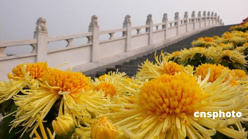 11月14日,河南開封市清明上河園里盛開的菊花。眼下,進入寒冷冬季,古城開封公園景點里的多種菊花依然鮮花盛開、耐寒傲霜,給冬日的人們帶來一股暖意。中新社發(fā) 凱楓 攝