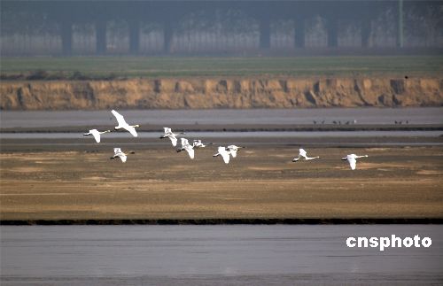 十一月二十日,來自北方的大天鵝在鄭州黃河上空飛翔、在水中嬉戲。這是今年入冬以來,發(fā)現(xiàn)的大天鵝最大的種群。連日來,鄭州黃河濕地保護區(qū)工作人員連續(xù)在保護區(qū)內進行鳥情觀察,共發(fā)現(xiàn)國家二級保護動物大天鵝九十三只和灰鶴兩只,以及大種群分布的豆雁一千三百余只,綠頭鴨五百三十只,大白鷺三百三十二只。據(jù)推算,各種水鳥達到三十萬只。中新社發(fā) 慎重 攝