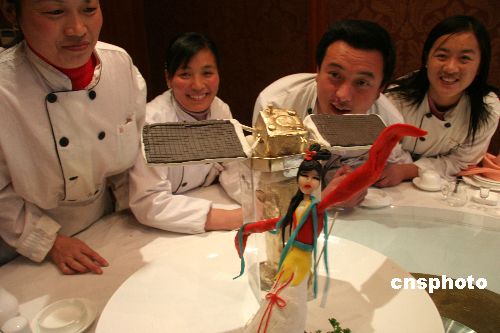 11月27日,江蘇連云港海州石棚山廚師培訓學校的老師臧海麗與該市一家知名酒店的面點師共同合作,創(chuàng)作了“嫦娥一號”面塑作品,以表達對中國嫦娥一號衛(wèi)星探月活動圓滿成功的喜悅心情。中新社發(fā) 進勇 攝