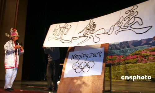 11月29日,遼寧沈陽(yáng)鄭錫平在八一劇場(chǎng)北方老齡藝術(shù)團(tuán)5周年年慶會(huì)上,用自制的自來(lái)水毛筆表演“倒著一筆”分別寫(xiě)完“2008北京奧運(yùn)”、“五環(huán)”、“迎奧運(yùn)”等,得到與會(huì)人員的贊嘆。
