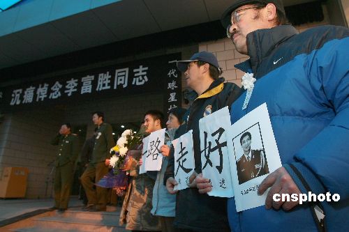 12月9日,八一體工大隊(duì)隊(duì)長(zhǎng)李富勝的追悼會(huì)在八寶山舉行,中國(guó)足壇及社會(huì)各界人士紛紛前來(lái)悼念這位中國(guó)足球歷史上的“鐵門”。李富勝作為20世紀(jì)80年代初期中國(guó)國(guó)家隊(duì)的主力門將,被廣大球迷稱為“鐵門”。中新社發(fā) 富田 攝