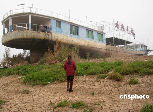12月10日清晨,湖南境內(nèi)湘江流域長(zhǎng)沙段面臨最低枯水位,游船高高擱淺在干涸的河床上。2007年汛期之后,湖南省降雨持續(xù)偏少,旱情迅速發(fā)展,已持續(xù)兩個(gè)多月,湘江水位持續(xù)走低,部分江段出現(xiàn)歷史記載以來(lái)的最低水位。據(jù)統(tǒng)計(jì),目前湖南全省因旱造成4500多個(gè)村民組8.3萬(wàn)多人及4萬(wàn)多頭大牲畜飲水困難。中新社發(fā) 劉雙雙 攝
