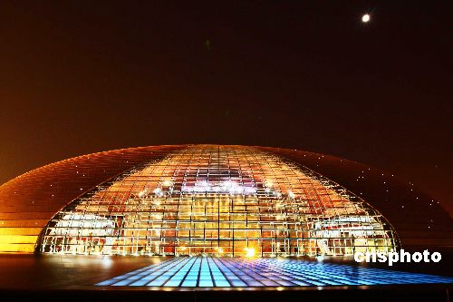 12月15日,明月與明亮的國(guó)家大劇院交相輝映。中新社發(fā) 鄭雄增 攝