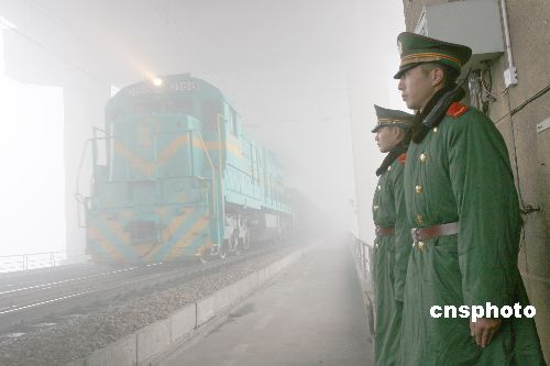 12月20日,武警守橋官兵在南京長江大橋橋面巡邏。連日來,南京遭遇50年來連續(xù)性大霧襲擊,為1951年以來大霧過程持續(xù)時間最長的一次,南京地區(qū)交通受到嚴(yán)重影響。武警江蘇總隊南京支隊守橋部隊加大巡邏力度,確保交通暢通和過橋行人、車輛安全。當(dāng)日,江蘇省首次大霧紅色預(yù)警信號。中新社發(fā) 韓華 攝