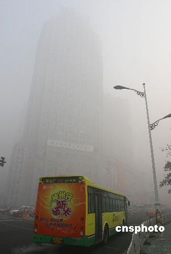 圖:烏魯木齊空氣污染嚴(yán)重 百米高樓淹沒霧中