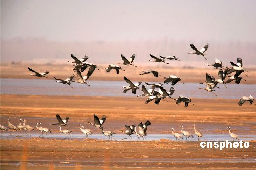 一月四日,大批灰鶴在鄭州黃河濕地棲息。灰鶴屬于國家級(jí)二級(jí)保護(hù)動(dòng)物,全世界約有一萬只以上,近日,在鄭州黃河濕地保護(hù)區(qū)觀測(cè)到灰鶴六百一十二只,屬首次在這里發(fā)現(xiàn)。中新社發(fā) 慎重 攝