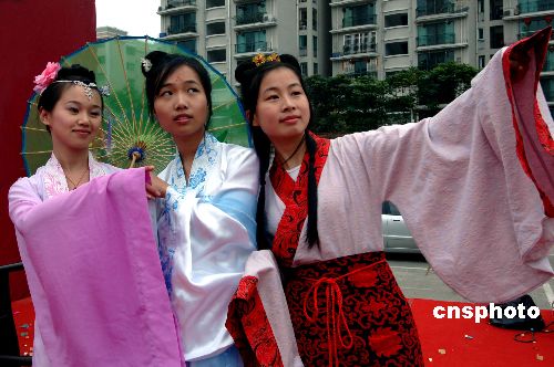 一月十八日,福州漢服愛好者正在表演情景劇。當(dāng)日,福州漢唐文化藝術(shù)中心隆重開業(yè),熱衷追逐古典文化的福州漢服天下工作人員上臺(tái)表演助興。中新社發(fā) 王東明 攝