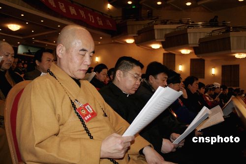 圖為來自宗教界的委員在認(rèn)真聽取工作報告。