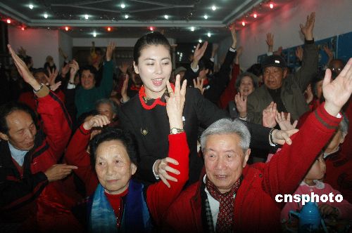 2008年1月24日,位于?谑械暮D峡鞓废﹃柧蠢蠄@舉辦“敬老愛老迎春聯(lián)歡晚會(huì)”,來自全國各地在該園休閑過冬的150多名“候鳥老人”與海南航空的20多名乘務(wù)員歡聚一堂,互送新年禮物和互動(dòng)表演文藝節(jié)目,共同歡度了一個(gè)難忘的夜晚。中新社發(fā) 善平 攝
