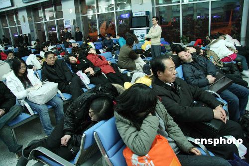 1月27日消息,1月13日以來,湖南省遭遇1954年以來,50年不遇的、持續(xù)時(shí)間最長、氣溫最低的冰凍天氣,長沙機(jī)場(chǎng)受冰雪天氣影響,飛機(jī)跑道結(jié)冰,導(dǎo)致大面積航班取消或延誤,25日當(dāng)晚19點(diǎn)15分機(jī)場(chǎng)開始關(guān)閉,場(chǎng)內(nèi)2000多名已辦登機(jī)手續(xù)或途經(jīng)此中轉(zhuǎn)的返鄉(xiāng)乘客滯留在候機(jī)廳內(nèi)。中新社發(fā) 蘇巧帥 攝